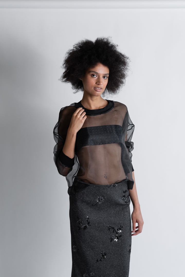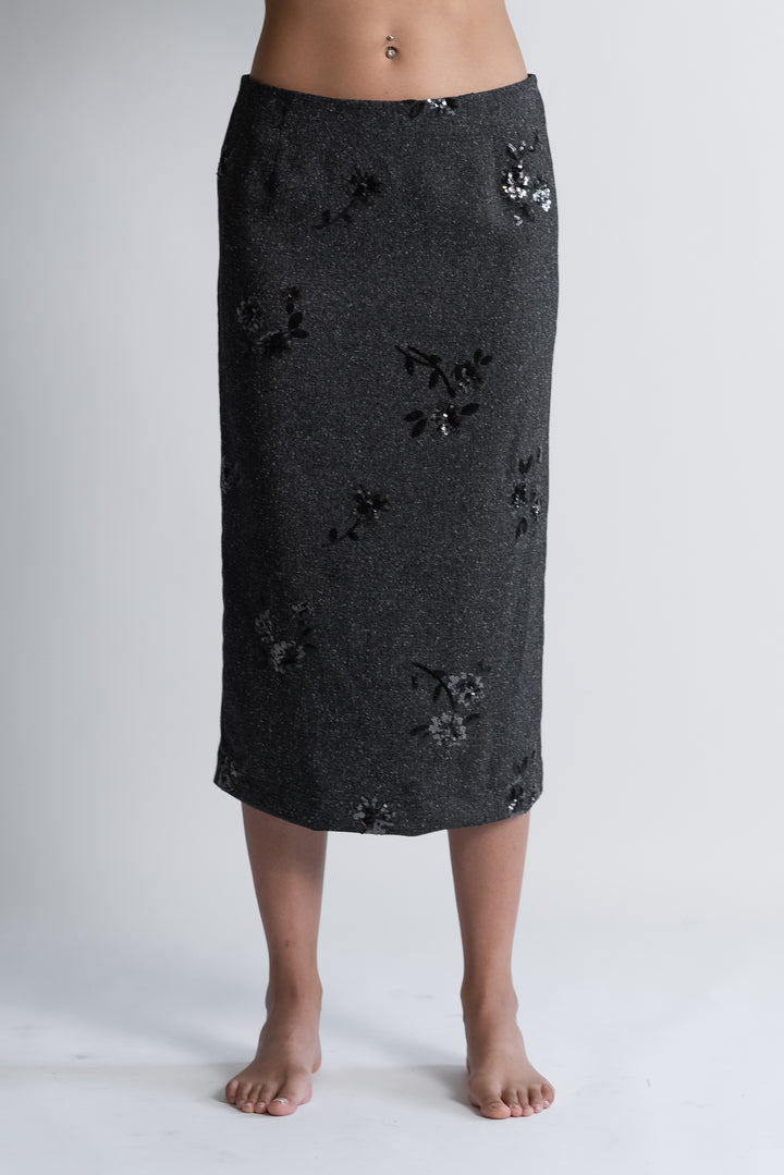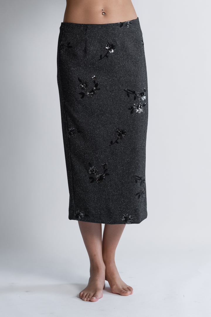 Gonna tubino midi in tweed sale pepe con paillettes, e zip centrale dietro.