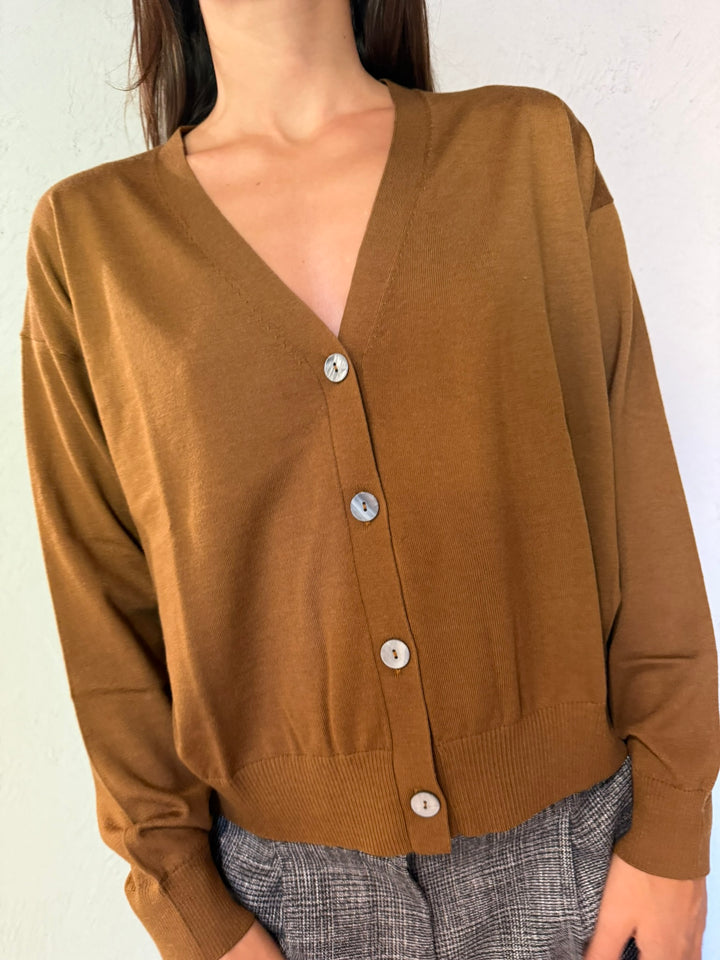 Maglia Cardigan Mini Bottone Madreperla.